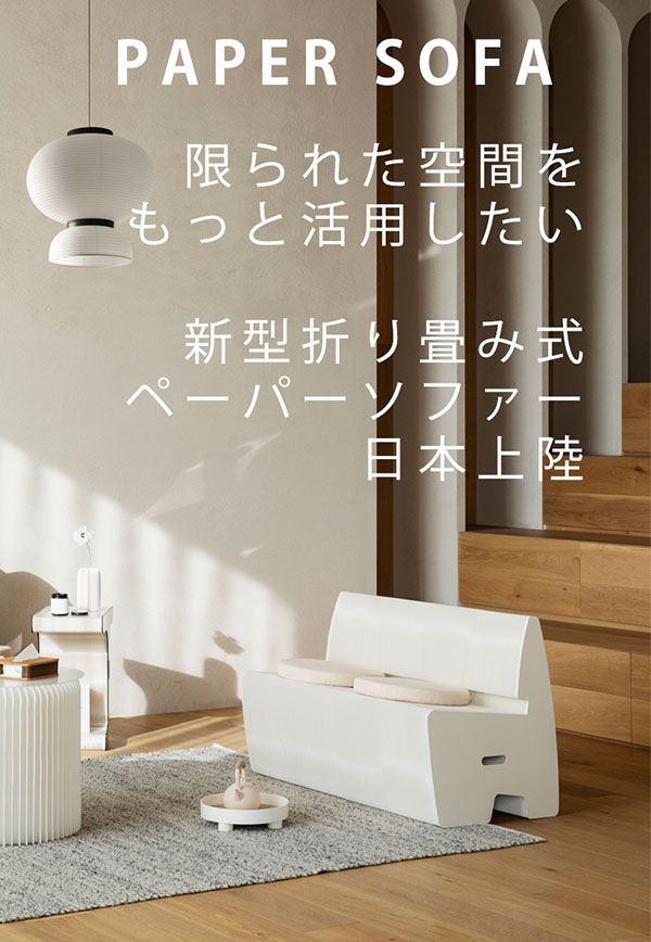 PlayWings、ハトロン紙で作られた省スペース家具「ペーパーソファ」を発売