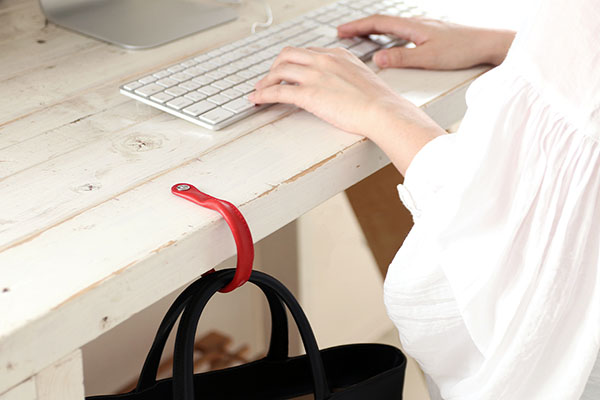 「ハンガーブレスレット[I]」は、外出先でのバッグの置き場に困らないためのアイテム。持ち歩く際には腕に取り付けるなどしてファッションアイテムになるだけでなく、肌身離さず持っておけるのでなくしづらい。バッグハンガーとして使う際には腕から取り外すだけ。素材に牛革(オイルレザー)、栃木レザー、金属を使用しているので、コンパクトながらしっかりとした耐久性も備えている。