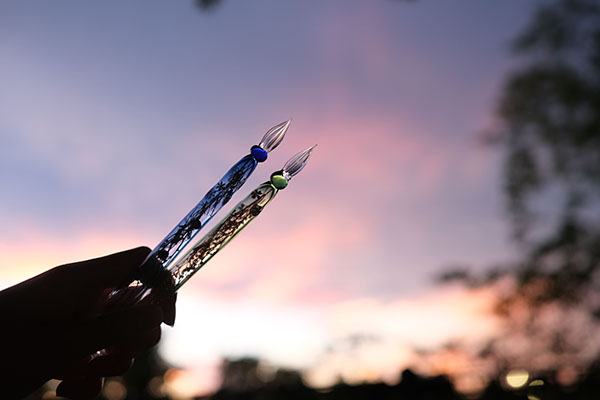 カラーバリエーションは2種類で、冬のガラスペン「六花」と春のガラスペン「月朧」を展開。
