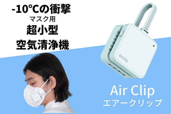 「マスク用小型空気清浄機AirClip」は、高機能フィルターとファンによりマスク内を快適にするアイテム。多様なマスクに対応しているので、普段から使っているマスクを取り付けるだけで快適な空気循環マスクとして使用可能。