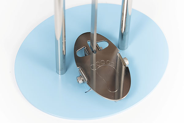 「こども専用の消毒スタンド」は、横浜で創業113年の老舗メーカーが手がける製品。アルコールが目に入らない高さにしていたり、ぶつかってケガをしづらいラウンドデザインになっていたりと、安心して使用できる。また、ペダル下に指を入れても挟まれない設計。