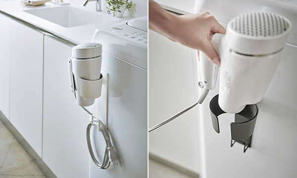 山崎実業、強力マグネットで壁面に取り付けできるドライヤーホルダーを発売