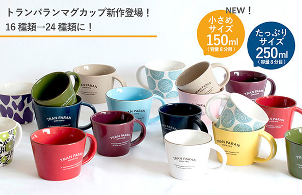 サイバール株式会社は8月24日、「トランパランマグカップシリーズ 小さいサイズ」の発売を発表した。創業約100年の歴史ある窯元が作るマグカップより登場するミニサイズ。TRAN PARAN公式オンラインストアなどにて、「カラーマグカップ」は1,500円(税込)、「デザインマグカップ」は1,800円(税込)で販売する。