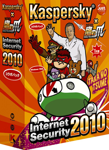 株式会社ジャストシステムは、セキュリティソフト「Kaspersky Internet Security 2010」と、FLASHアニメ「秘密結社 鷹の爪」のコラボレーション「Kaspersky Internet Security 2010 1年版 鷹の爪コラボパック」を発売する。パッケージには、鷹の爪の作者FROGMAN氏の描き下ろしデザインを採用。
