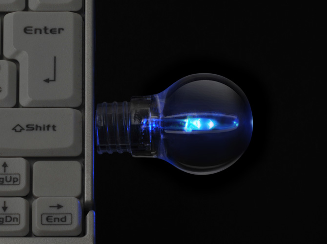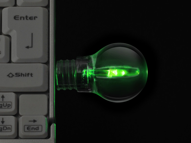 (株)グリーンハウスは、豆電球型USBメモリ「GH-UFD2GDQ」シリーズを発売開始。USB端子に接続することで豆電球が点灯。データの読み書き時には、豆電球が点滅する。