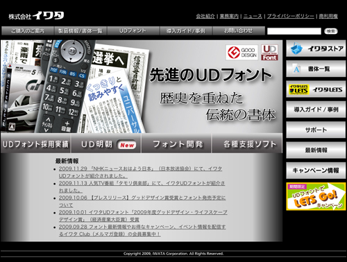 (株)イワタはユニバーサルデザイン採用のフォント「イワタUDフォント」シリーズに「イワタUDゴシックRA(表示用/本文用)」、「イワタUD明朝M/D(標準/かなA)」を追加発売。点対称文字の差別化や、ふところを広くとるなどの工夫を施すことで誤読を防止。