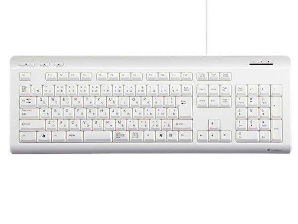 キーボード「SB-KB01-WDSS」は日本語109キー対応。ホットキー3個搭載のほか、傾斜角度調整スタンドを備えている。色はブラックとホワイトの2色展開。