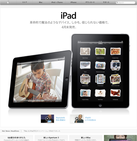 Apple、iPadの日本での発売4月後半に決定