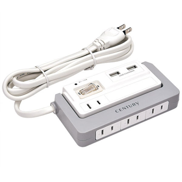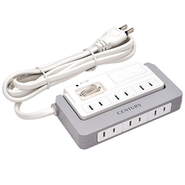 (株)センチュリーは、OAタップの4個口タイプ「COT2P4U2S1」シリーズと、6個口タイプ「COT2P6S1」シリーズを発売する。雷サージ保護機能を搭載。