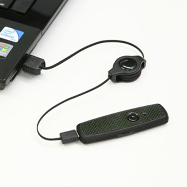PCのUSBポートから直接電源をとるため、電池切れの心配なく利用することが可能。また、microSDを常時本体に収納しておけばUSBメモリとして使え、プレゼンなどの資料を保存できる。モバイル利用に最適な巻き取り式のケーブルを採用。