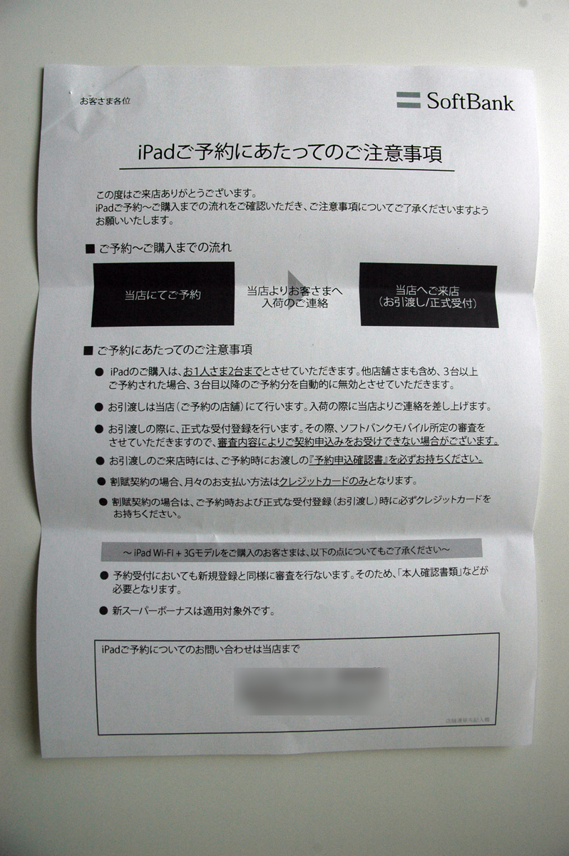 (11:30)予約者に配布された書類2-iPadご予約にあたっての注意事項