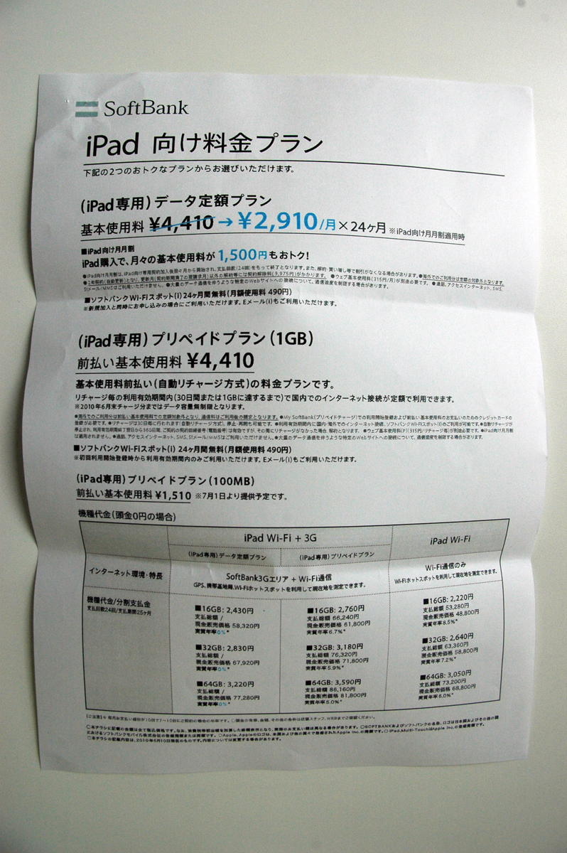 (11:30)予約者に配布された書類4-iPad向け料金プラン