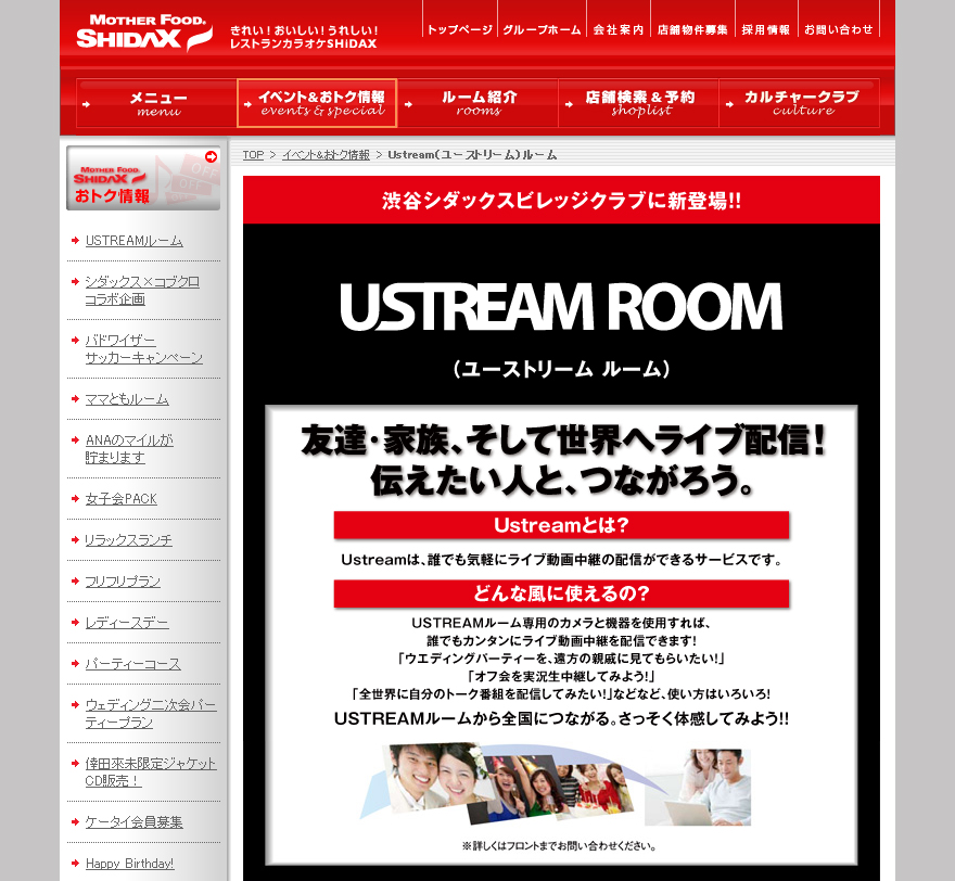 シダックス、渋谷のレストランカラオケに「USTREAMルーム」をオープン!