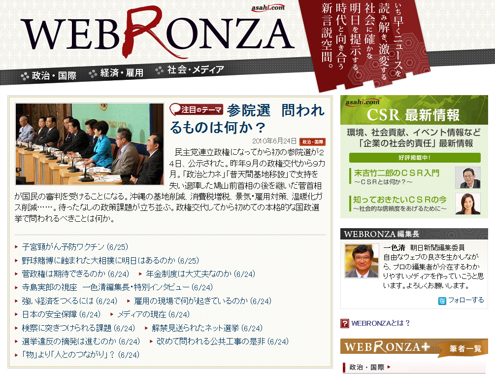 朝日新聞社、ネット上の価値ある言説を集めて掲載する「WEBRONZA」