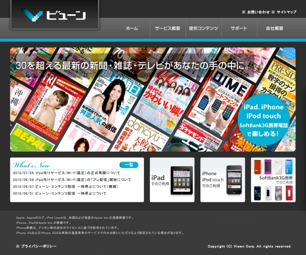 (株)ビューンは、iPhone/iPod touch/iPadに新聞や雑誌などのコンテンツを配信する「ビューン」のiPad向けサービスについて、7月6日午前0時より正式再開すると発表した。Wi-Fiネットワーク経由限定での再開となる。