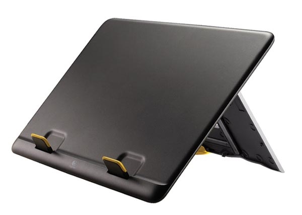 ロジクール ノートパソコン スタンド N110は20°、30°、40°の3段階の角度にノートPCを設置でき、ディスプレイを自分の体に合った高さに調整可能。外付けのキーボードやマウスなどと組み合わせることで、作業時に自然な姿勢を保つことができる。サイズは360mm×270mm×19mm(収納時)、重量665g。