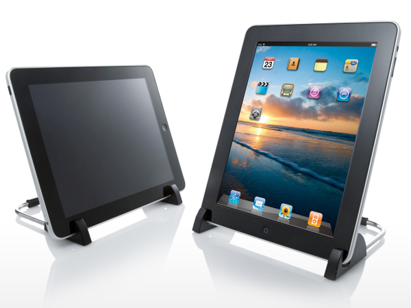 サンワサプライ(株)は、iPadを立てかけたまま使用できるスタンド「MR-IPADST1」と、Dockコネクタ保護カバー「PDA-IPADCAP」、クリーニングクロス「PDA-IPADCC」を発売した。