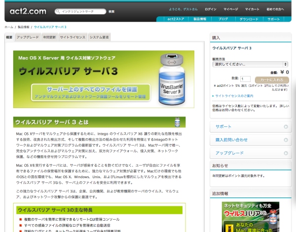 アクト・ツー、Mac OS X Server用セキュリティソフト「VirusBarrier Server 3」