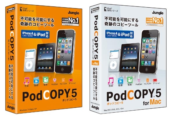 ジャングル、iPod/iPad/iPhoneのバックアップソフト「PodCOPY 5」