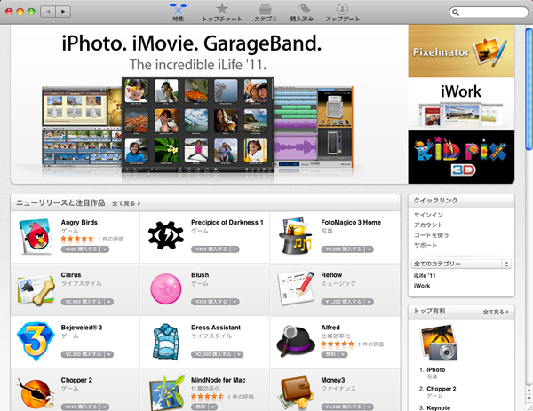 Appleは、1月6日に公開した「Mac App Store」でダウンロードされたアプリケーション数が、初日で100万本を突破したと発表した。