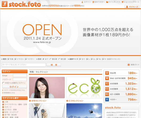 (有)リンクスは、世界中の1000万点を超える高画質イメージ画像素材を、189円から販売するロイヤリティーフリー素材サイト「stock.foto」をオープンした。