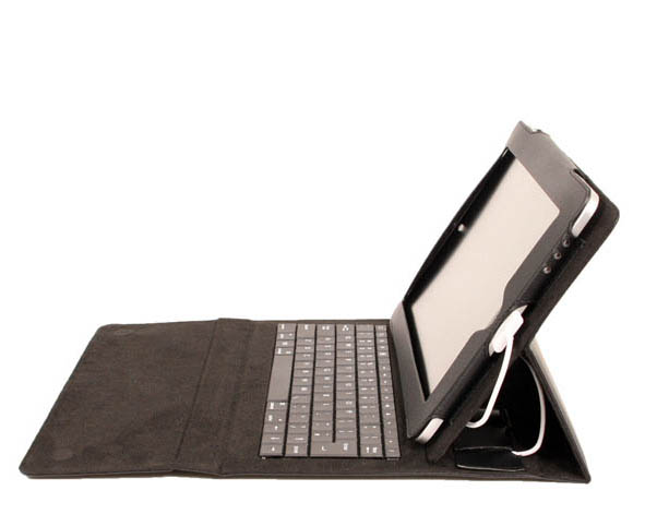 同製品は、iPad専用革製ケースにキーボードを付属させたもの。ケースを開いて、iPadを起こし、キーボードのケーブルをつなげば、ノートパソコンのようにiPadを使うことができる。専用ケースなので、iPadがすっきりと収納されるため、ケースを折り畳んでしまえば、ソフトキーボードを利用する普通の使い方にも支障はでない。場面に合った使い方が選べる。キーボードは英語キーボードだが、日本語の入力は普通に行うことができ、また充電や、設定などの必要はないため、安心して使うことができる。