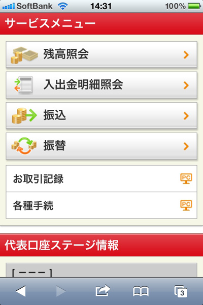 iPhoneから利用した三菱東京UFJダイレクト インターネットバンキング