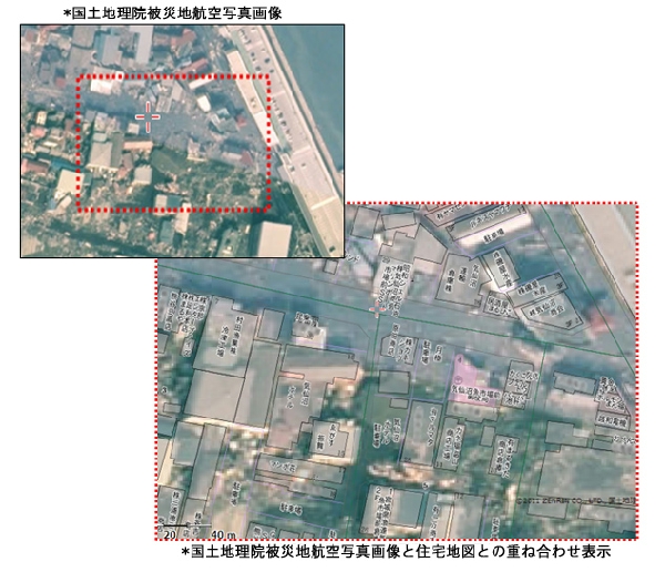 画像データは東京大学空間情報科学研究センターの柴崎研究室によって、震災前の住宅地図データと国土地理院が提供する震災後の航空写真画像を重ね合わせて整合性を検証した。その結果、被害状況を住宅地図上でほぼ問題なく確認できたという。