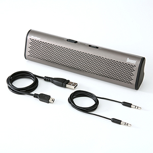 同製品は、形状がバータイプでサイズもコンパクトなため、リビングやキッチンで音楽を楽しんだりするほか、ビジネスバッグなどに入れておきノートPCと繋げて取引先へのプレゼンなどの際に利用することも可能。重量約130g、幅193×奥行40×高さ53mm、実用最大出力5W、連続駆動約8時間、入出力端子はUSBとAUX(φ3.5mmステレオミニプラグ)。