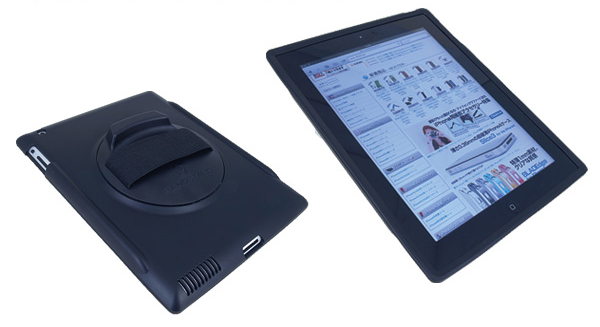スペックコンピュータ株式会社は、iPad2に装着するだけで、片手持ちをアシストするバンドとグリップ付きのセミハードカバーを発売した。定価は6300円。