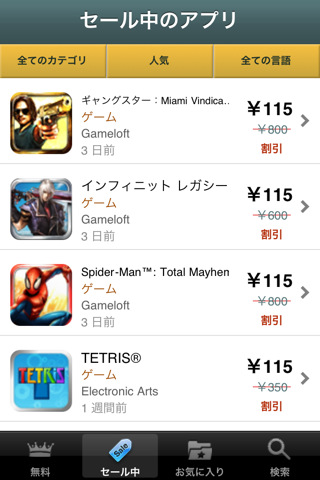 「セール中のアプリ一覧」(iPhone/iPod touch/iPad対応、無料)