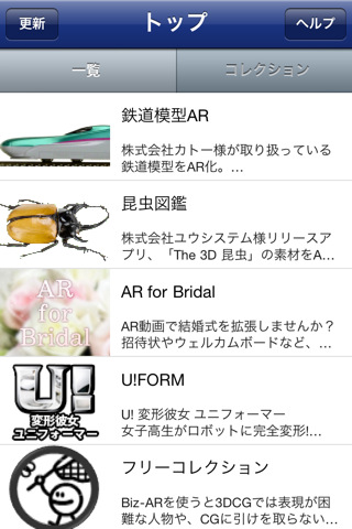 同アプリは企業が登録した広告/プロモーション用のコンテンツをAR(拡張現実)で見られるアプリ。コンテンツを選んでスマートフォンのカメラをマーカーに向けると、現実の画像にデジタル情報が重ね合わされて表示される。なお、マーカーの入手方法は各コンテンツに記載されている。企業によるコンテンツサーバへのデータ登録は有償で、月額課金制となっている。