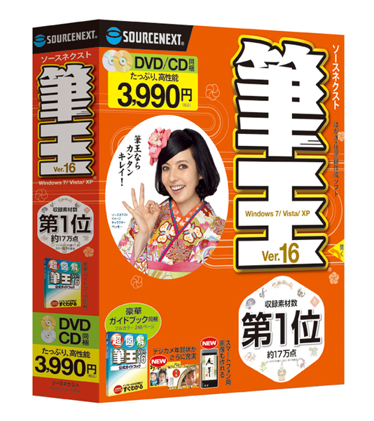 ソースネクスト(株)は、同社より発売していたハガキ作成ソフト「筆王」の最新版「ソースネクスト 筆王 Ver.16」を9月2日に発売すると発表した。価格は通常パッケージ版が3990円、アップグレード・乗換え版が2990円(ともに税込み)となっている。