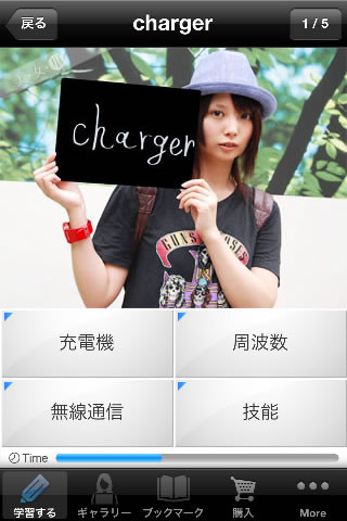 同アプリは英単語学習のための4択クイズアプリ。200人以上の街角の美女たちがそれぞれの声で出題し、解答の正誤も声で知らせてくれる。英単語を習得すると出題者の写真やプロフィールを見ることが可能だ。英単語の解説画面には各単語の実践的な例文も掲載する。