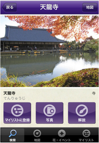 さらに、どこの寺社でどんな花が咲いているかを調べられる「花情報ページ」や、主要な寺社のイベントや手作り市などを調べられる「イベント情報ページ」も用意。同社は同アプリのAndroid版も近日中にリリース予定としている。
