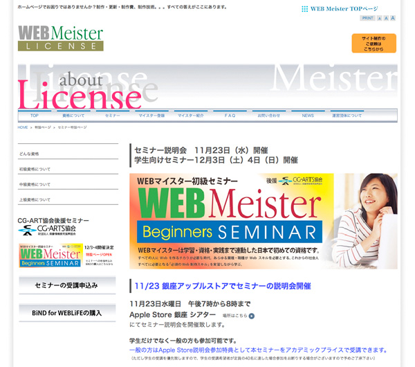 「WEBマイスター初級」の資格試験と連動した認定セミナーが開催