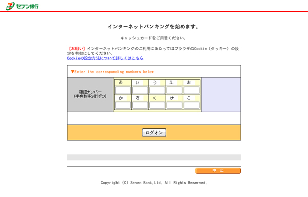 フィッシングメールは英語で書かれたものと日本語で書かれたものの2パターンが見つかっている。フィッシングサイトは、トップページではお客様IDとログインパスワードの入力、次ページでは確認ナンバーの入力が求められる。同協議会は、フィッシングサイトでは各種情報を絶対に入力してはならないと注意を促している。