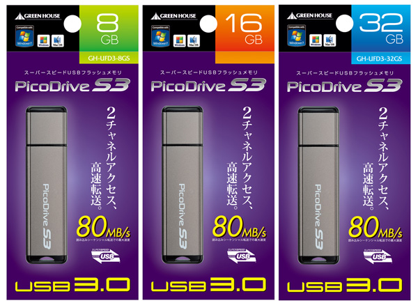 グリーンハウス、USB 3.0対応のUSBメモリ「PicoDrive S3」を発売
