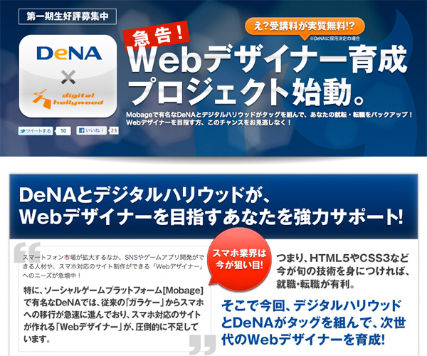 デジハリ、DeNAとの共同で「Webデザイナー育成プロジェクト」を開始