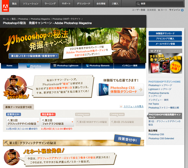 「Photoshopの秘法 発掘キャンペーン」特設ページ