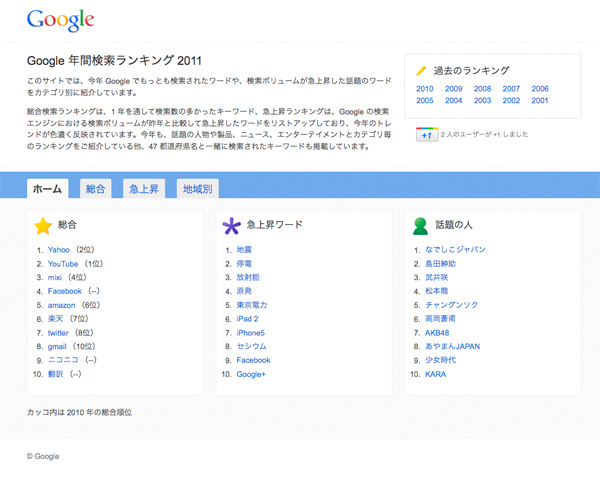 URL:http://www.google.co.jp/press/zeitgeist2011/