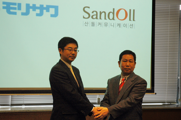 株式会社モリサワ 代表取締役社長 森澤彰彦氏(左)とSANDOLL CEOソク クムホ氏(右)