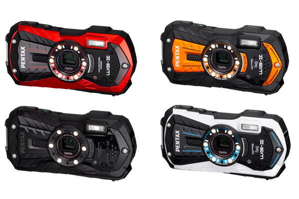 ペンタックスリコーイメージング株式会社は、コンパクトデジタルカメラ「PENTAX Optio WG-2」および「PENTAX Optio WG-2 GPS」を3月中旬に発売する。操作部材や突起部を除く本体サイズは約122.5(幅)×61.5(高さ)×29.5(奥行)mmで、価格はオープン。「Optio WG-2」は電池/カードを除く重量が約173gで、バーミリオンレッド/オールブラックの2色、「Optio WG-2 GPS」は電池/カードを除く重量が約177gで、シャイニーオレンジ/グロスホワイトの2色となっている。