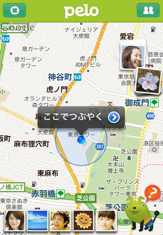 同アプリは、外出先でつぶやくことで親しい友人や家族と今いる場所を共有することにより、プライベートなつながりをより豊かにするアプリ。散歩のお供をするペットがバッジやクーポンを掘り出してくれる機能や、空き時間を友人に知らせる「FREE」ボタン、iPhoneのアドレス帳との連携機能なども搭載する。