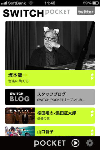 株式会社ダーツライブと株式会社スイッチ・パブリッシングは、雑誌「SWITCH」のアーティスト関連のコンテンツを楽しめるiPhoneアプリ「SWITCH POCKET」を提供開始した。App Storeからダウンロード可能で、アプリ本体は無料。各アーティストの記事や写真追加などは有料となる。