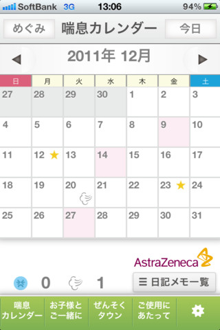 株式会社QLifeは、アストラゼネカ株式会社との共同開発により、ぜんそく患者向けのiPhoneアプリ「喘息ダイアリー」を提供開始した。App Storeから無料でダウンロードできる。