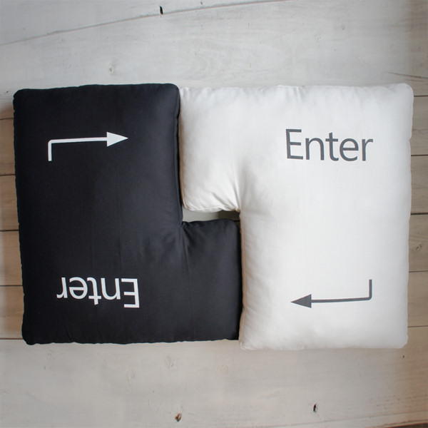 一番小さな正方形のキーボードクッションは椅子やソファに適したサイズとなっており、Shiftキーのクッションは抱き枕に最適な大きさで、もっとも大きなEnterキーは座布団などで活用できる。