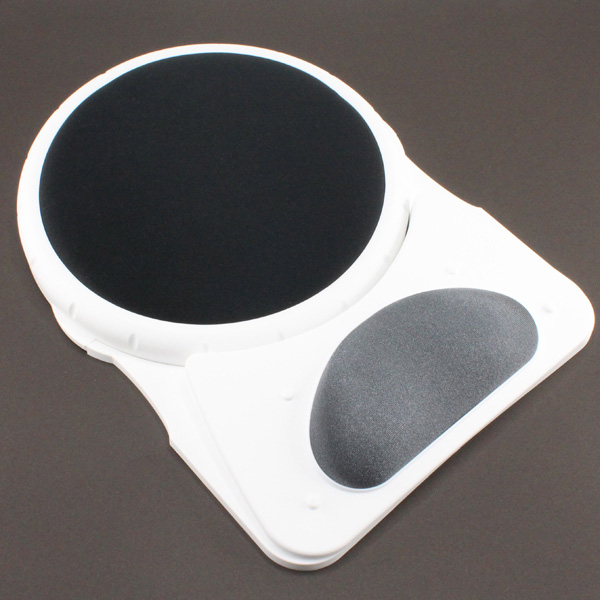 本製品は、緩やかな曲線を描く立体的なドーム型の形状により、一般的な平面のモデルよりマウスの可動範囲が広くなるマウスパッドだ。マウスを移動させる動作が最小限に抑えられるとともに、平面におけるマウス操作での手首を軸とした動きから、腕まで合わせて動かす操作へと自然に改善することが可能。長時間の作業で手首にかかる負担を軽減することができる。製品には、マウス裏面に貼ることで操作を滑らかにできるステッカーも付属。