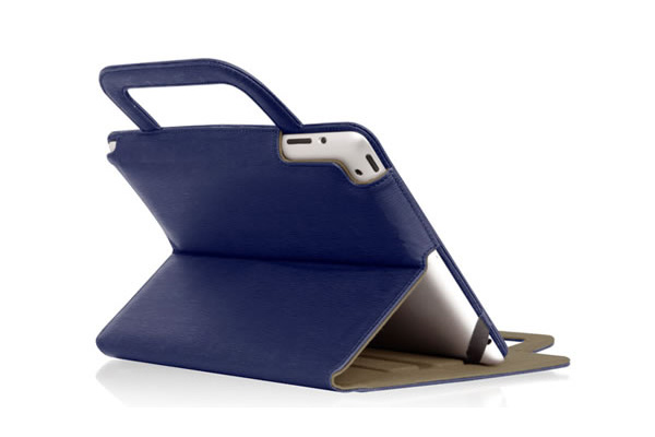 The new iPad/iPad 2に対応する270gのキャリングケースで、3段階の角度調整が可能なスタンドとしての使用も可能。ブリーフケース型で、外側に合皮、内側にマイクロファイバーが用いられており、カバー開閉による電源の自動ON/OFF機能にも対応している。カラーバリエーションはブラック/ネイビーの2色で、市場予想価格は各4980円前後。