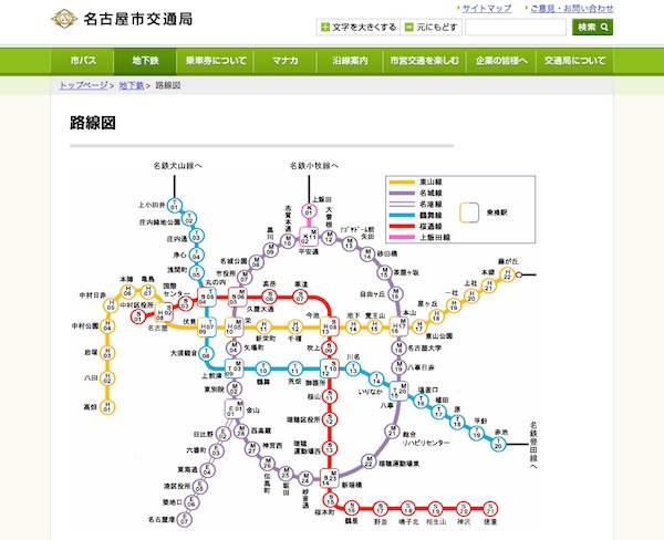 名古屋市交通局 Webサイトに掲載の路線図